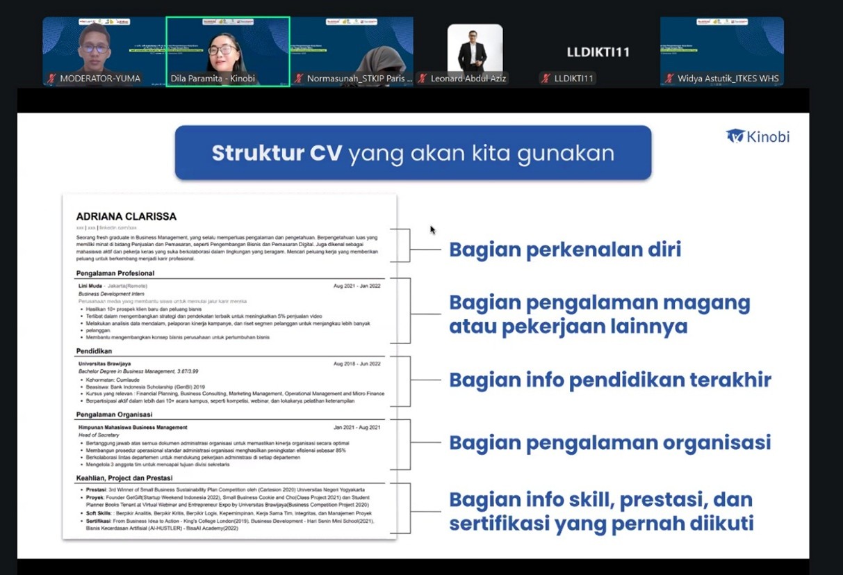Diskusi menghadirkan sejumlah perwakilan dari sektor industri dan mitra pendidikan, antara lain Leonard Abdul Aziz dari PT Astra, Ni Luh Dila Diah Paramita dari Kinobi Indonesia, serta Metta Eu dari Educlass Singapore. Para narasumber berbagi pengalaman dan praktik baik terkait kolaborasi perguruan tinggi dengan industri, peluang kerja sama berkelanjutan, serta penguatan peran kampus dalam menyiapkan lulusan yang adaptif dan kompetitif.